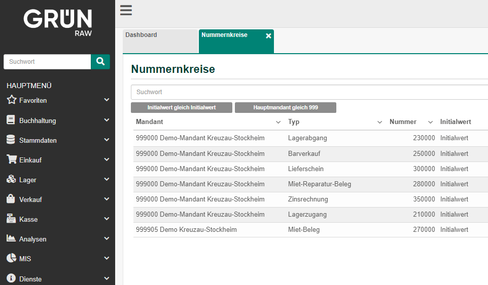 - Initialisierung der zuvor eingepflegten Nummernkreise