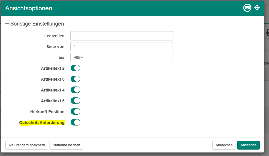 Bei Rechnungsdifferenzen ist unter Umständen die Anforderung einer Gutschrift beim Rechnungssteller erforderlich. Hierfür wurde in TeamServX ein automatisch generiertes PDF-Formular integriert. Dieses wird aus den Positionen vom Typ Gutschriftsanforderung und Belastungsanzeige erzeugt.Ausgegeben werden kann diese PDF über die Druck-/Seitenansichtsoptionen der Eingangsrechnung. Dort wurde eine entsprechende Optionen integriert.