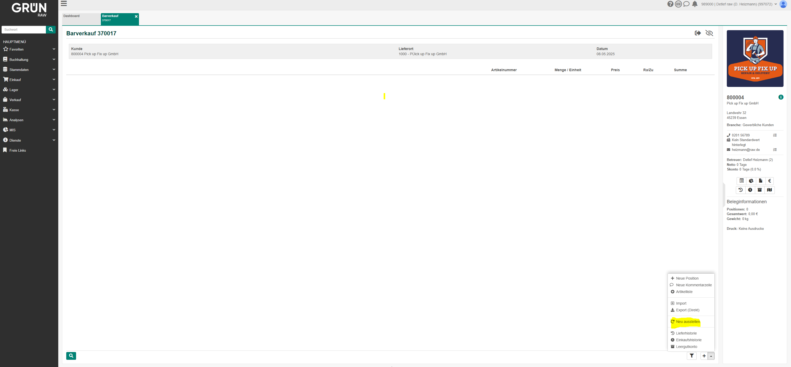– Legen Sie Sie im Programm Verkauf/Barverkauf eine neue Rechnung an.